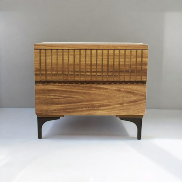 Diseño moderno con carácter. El buró Alejandrita está fabricado en MDF enchapado en parota, resaltando la belleza natural de la madera. Sus patas de metal aportan un toque sofisticado, creando...