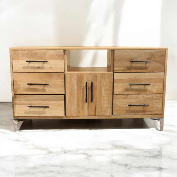 Para los que buscan un espacio de almacenamiento con estilo, este tocador cuenta con seis cajones y dos puertas en el centro, creando un cajon amplio en su interior, presenta...