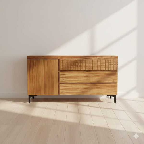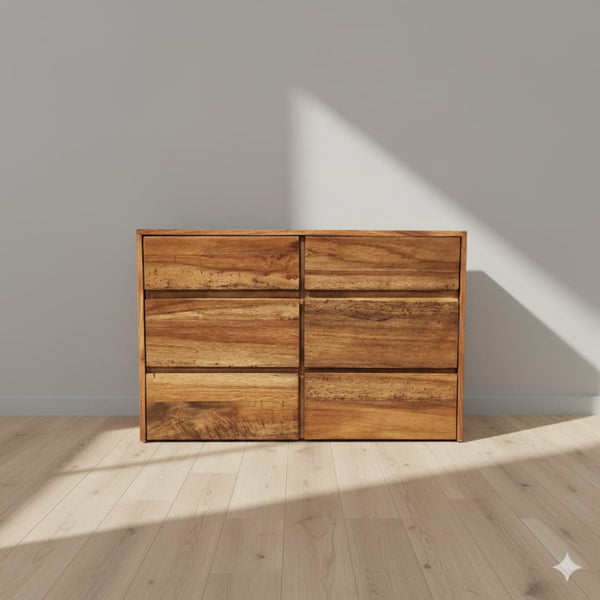 La simpleza de lo funcional se refleja en esta cajonera de madera de parota, ideal para quienes valoran el orden con estilo. Su diseño destaca la belleza natural de la...