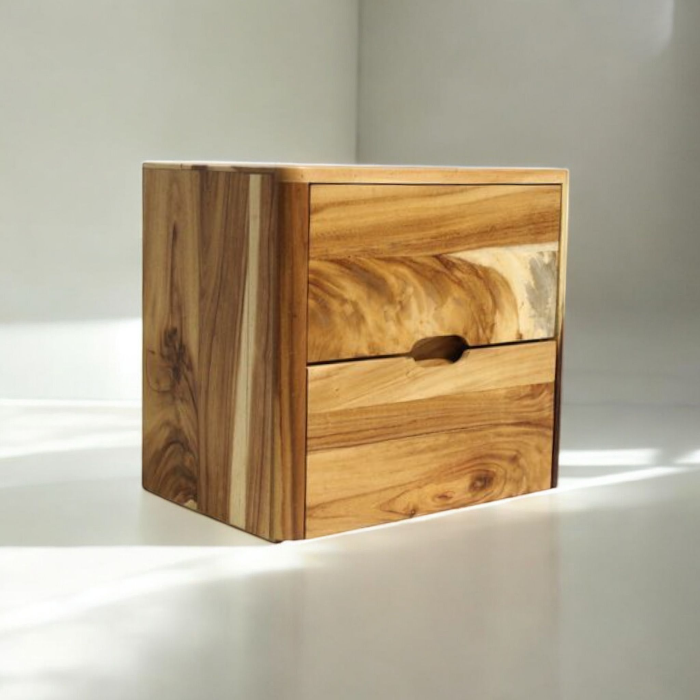 ✔️ Fabricado en madera sólida de parota, reconocida por su resistencia y acabados naturales únicos y MDF de 12mm  en el cajón.
