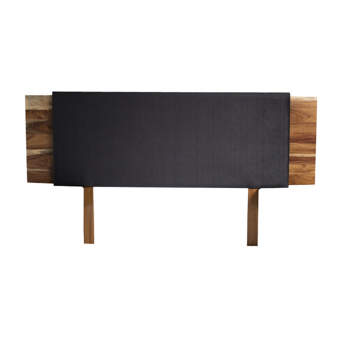 Cabecera realizada en madera de Parota con acabado natural y tapizada en tela. El color puede tener una ligera variación al mostrado en la imagen.