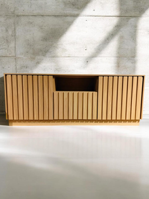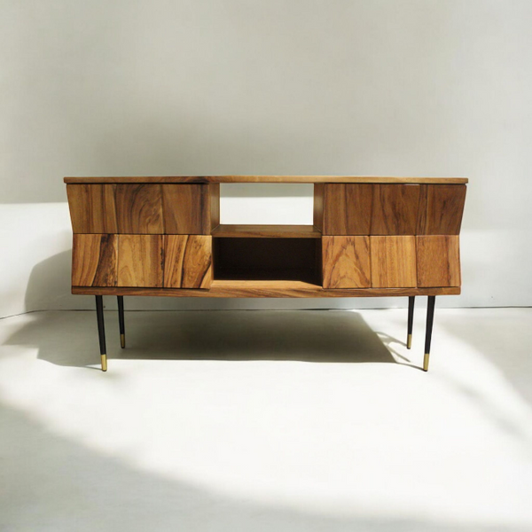 El centro de TV Quebec está fabricado en sólida madera de parota, destacando por sus vetas naturales que aportan calidez y elegancia. Su diseño combina líneas limpias con detalles funcionales...