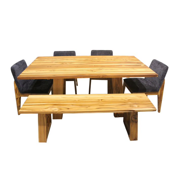 Nuestro comedor es simple pero artístico, su exclusivo diseño mantiene la textura natural de la madera e incluye una amplia banca para darle distinción a tu casa. Disfruta de tus días y tus noches en compañía de este hermoso set que se puede combinar fácilmente con tu decoración y puede mezclarse naturalmente con el resto de tus muebles.
