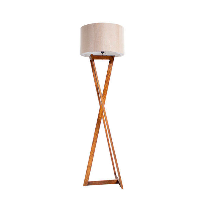Lampara de piso fabricada en fina madera de pino con terminado natural, incluye una delicada mampara de tela. El color puede tener una ligera variación al mostrado en la imagen.
