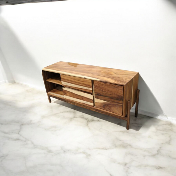 El centro de TV Quebec está fabricado en sólida madera de parota, destacando por sus vetas naturales que aportan calidez y elegancia. Su diseño combina líneas limpias con detalles funcionales...