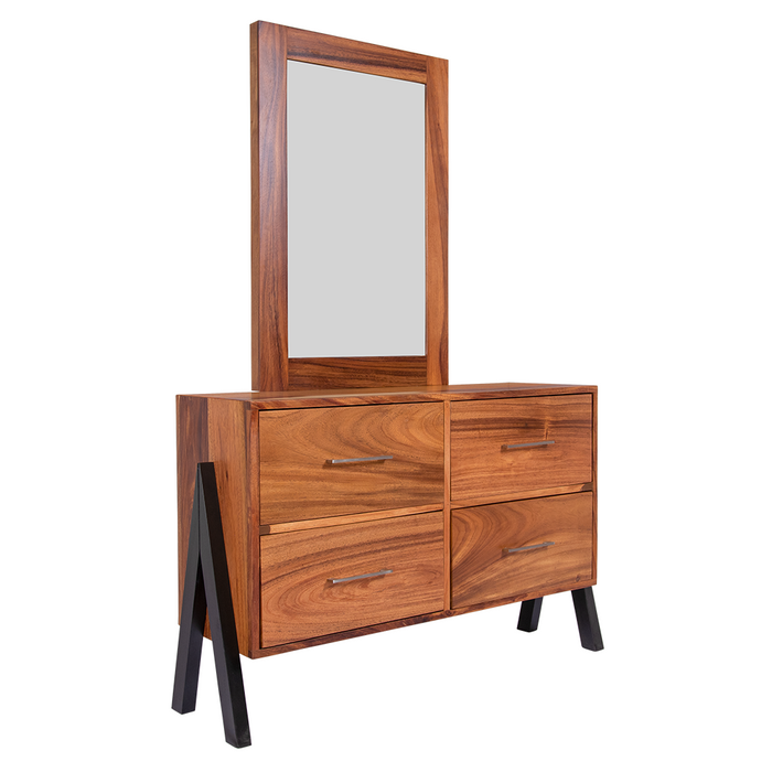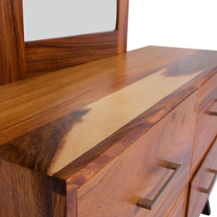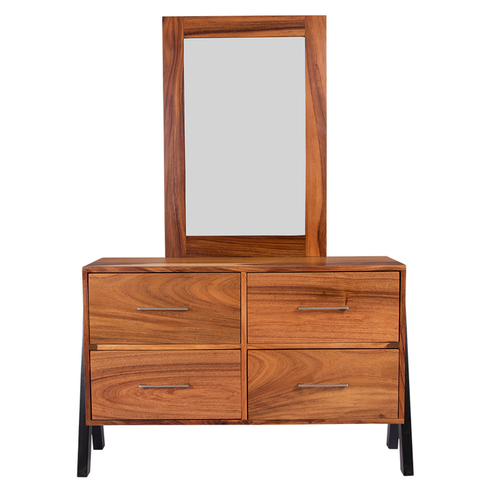 Elegante y moderno tocador con marco, ideal para lograr un ambiente equilibrado; este tocador en estilo minimalista, tiene excelentes acabados en madera de parota, patas de madera de pino color chocolate que combinan a la perfección.