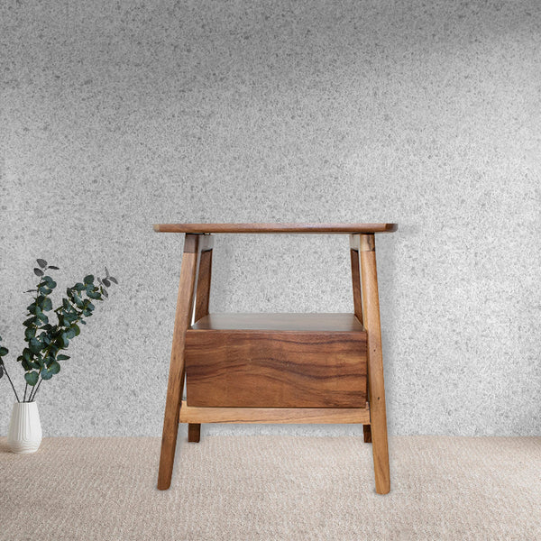 Simple y clásico, este hermoso buró esta fabricado en solida madera de Parota. Un diseño rustico ideal para decorar cualquier espacio. Cuenta con un estante extra para organizar tus noches...
