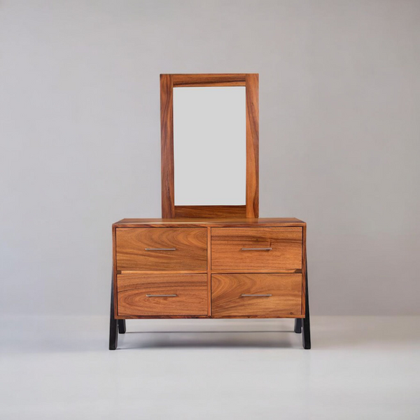 Elegante y moderno tocador con marco, ideal para lograr un ambiente equilibrado; este tocador en estilo minimalista, tiene excelentes acabados en madera de parota, patas de madera de pino color...