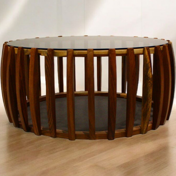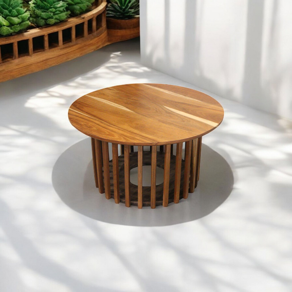 Agrega a tu sala un toque de elegancia natural con esta mesa de centro circular de 80 cm. Su base de sólida madera de parota resalta por sus vetas únicas...