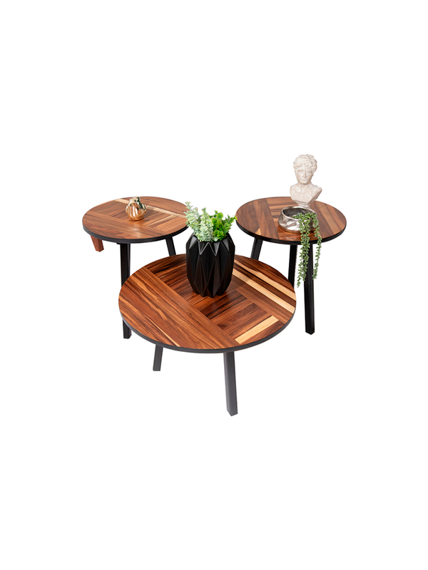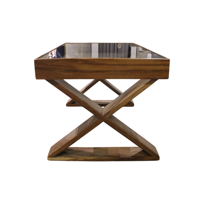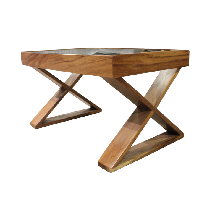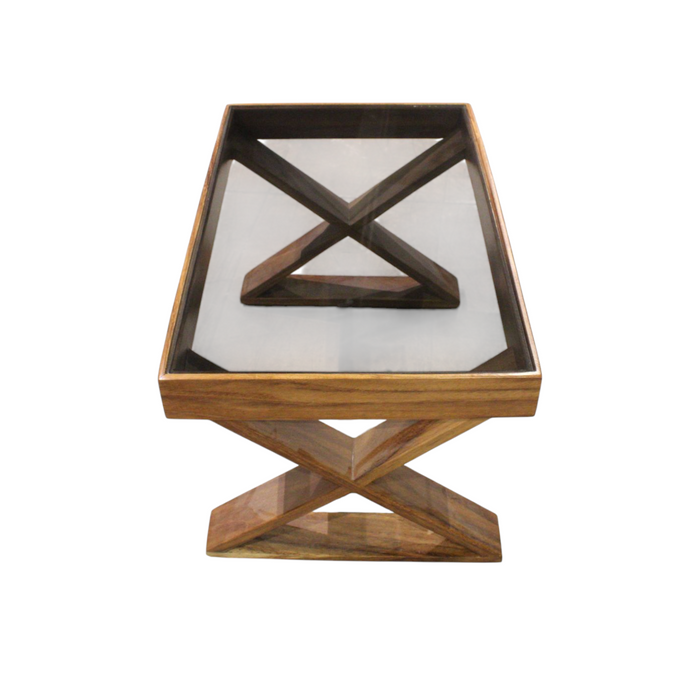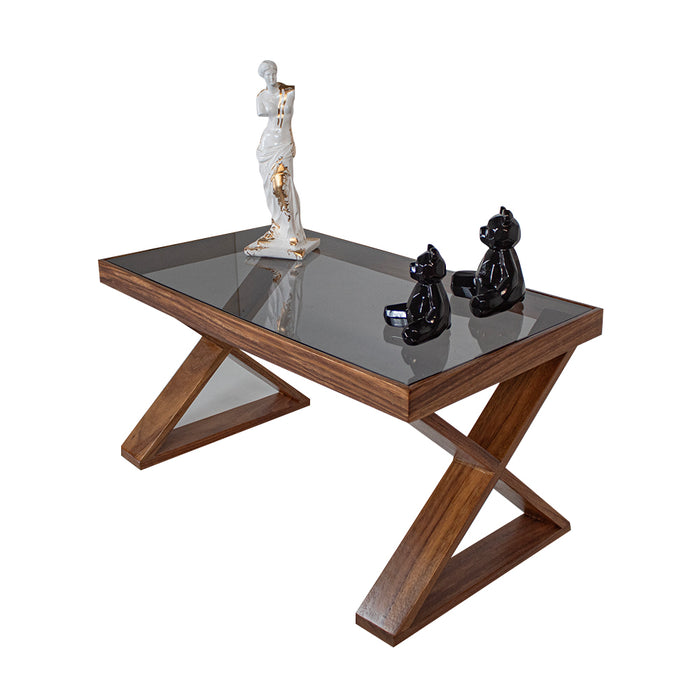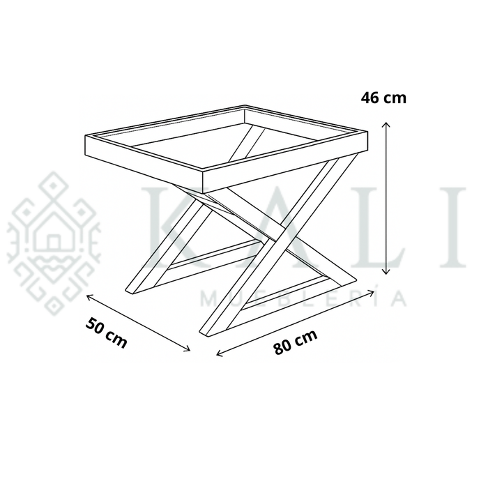 Mesa central fabricada en madera de pino con cubierta de cristal de 9mm color negro. El color puede tener una ligera variación al mostrarse en la imagen.