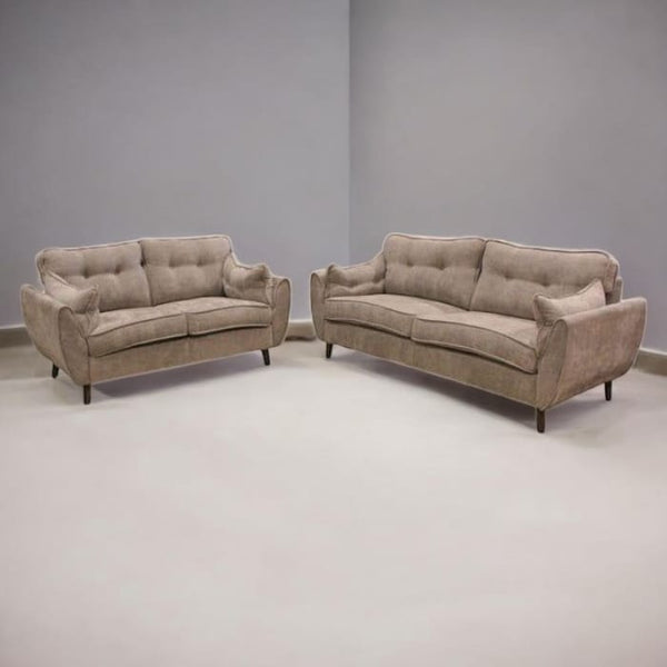 Este juego de sala está compuesto por un sofá de tres plazas y otro de dos plazas, ambos con un diseño elegante que combina elementos clásicos con líneas modernas y...