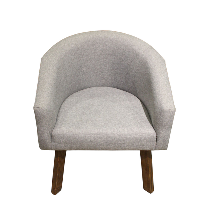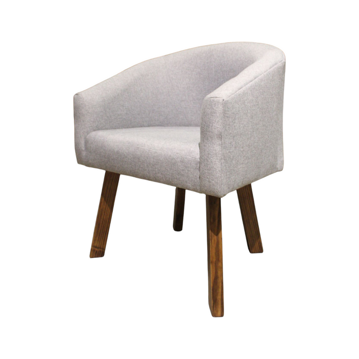 Silla de fina y resistente madera de Pino, tapizada con tela nova níquel color gris. El color puede tener una ligera variación al mostrado en la imagen.