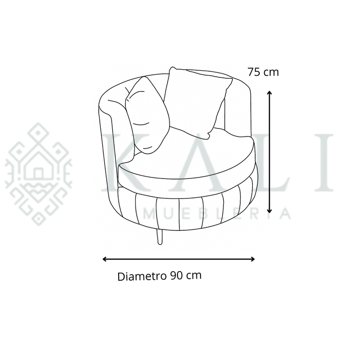 El Sillón Sidney destaca por su forma redonda y diseño contemporáneo. Está completamente tapizado en tela Frankfurt, suave al tacto y de gran durabilidad. Su base de herrería aporta estabilidad y un contraste moderno, ideal para añadir carácter a cualquier espacio.