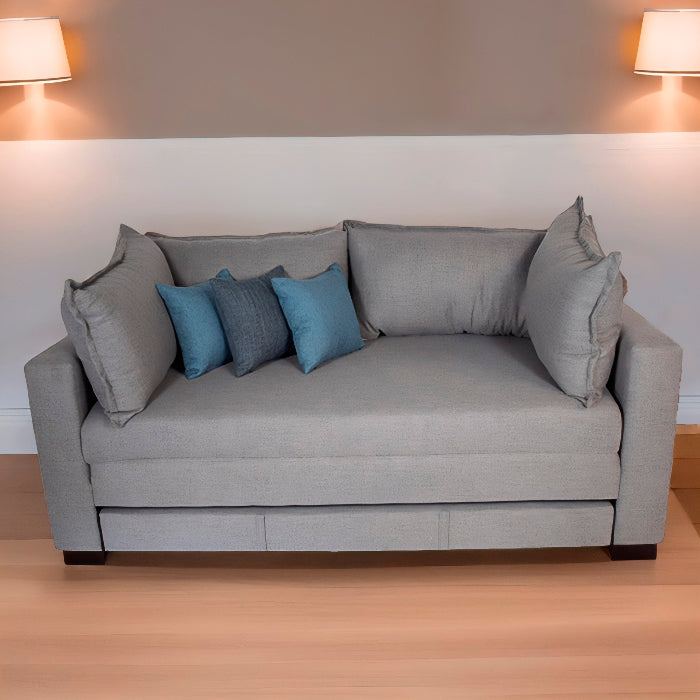 Nuestro sofá cama Hermes es una opción acogedora e ideal para un hogar que necesita estar siempre preparado para los huéspedes. Este sofá se convierte fácilmente en una amplia y cómoda cama para 2 personas, cuenta con 4 almohadones que puedes organizar y acomodar para apoyar tu espalda o tu cabeza, maximiza tus espacios y disfruta de tu hogar todos los días con este diseño.