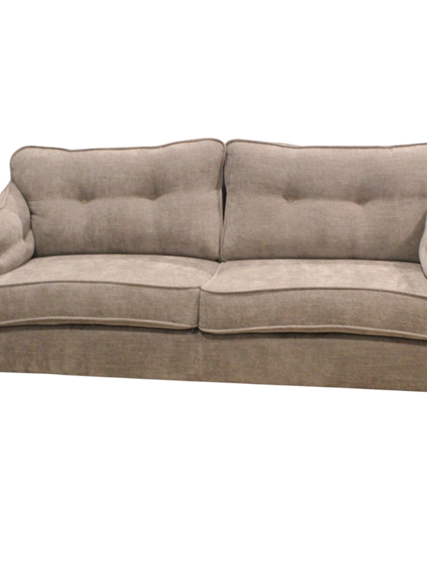 Sofá de fina madera de pino, poliéster, hule espuma y delcrón. Tapizado en tela Louis color Gris Mouse. El color puede tener una ligera variación al mostrado en la imagen.