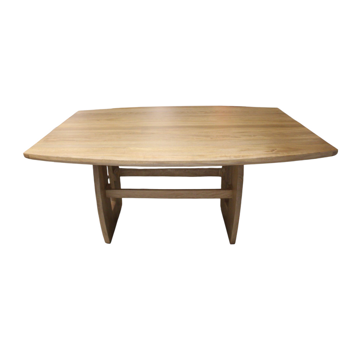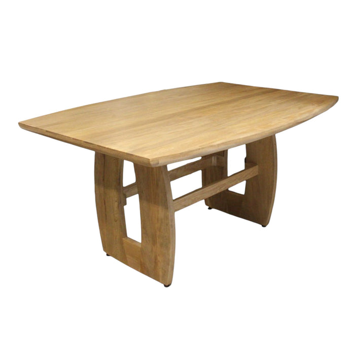 Mesa de madera de rosa morada, reconocida por su gran resistencia, durabilidad y vetas naturales marcadas que aportan carácter y elegancia. Su diseño contemporáneo con cubierta de forma ovalada suavizada, conservando cabezales rectos que mantienen la presencia rectangular de la mesa. y patas tipo “loop” ofrece excelente estabilidad y un estilo sobrio, ideal para ambientes modernos y rústicos.