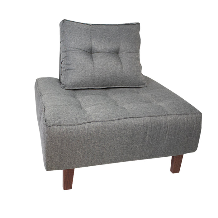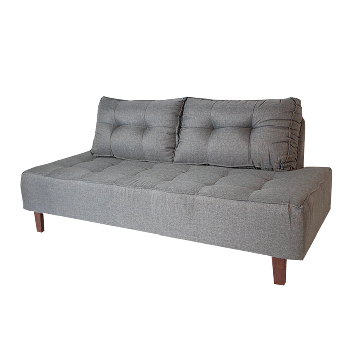 Madera de pino, poliéster, hule espuma, delcrón. Tela Louis color plata. El color puede tener una pequeña variación al mostrarse en la imagen.