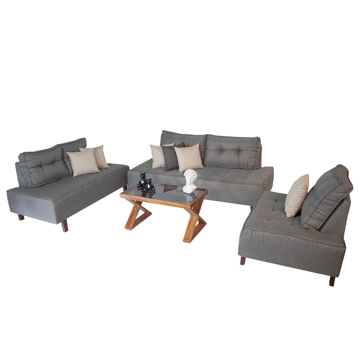 De un contemporáneo y moderno, el diseño de nuestra sala Catalina está elaborado en madera de pino con gran calidad, cuenta con asientos reforzados en resorte en estilo en zigzag calibre 8 que resultan ser muy resistentes y hacen juego con la fina tela Louis en color gris plata. , perfecto para crear un ambiente limpio y ordenado, pero a su vez acogedor.