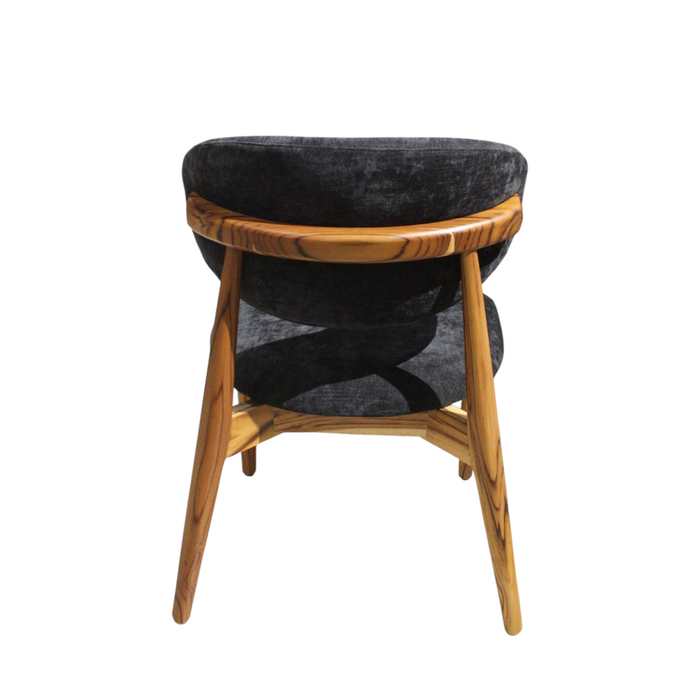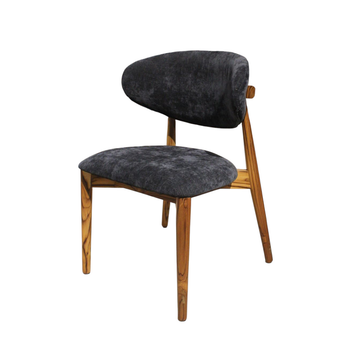Silla de madera de teca con acabado natural y tapizadas en tela france black. El color puede tener una ligera variación al mostrarse en la imagen.